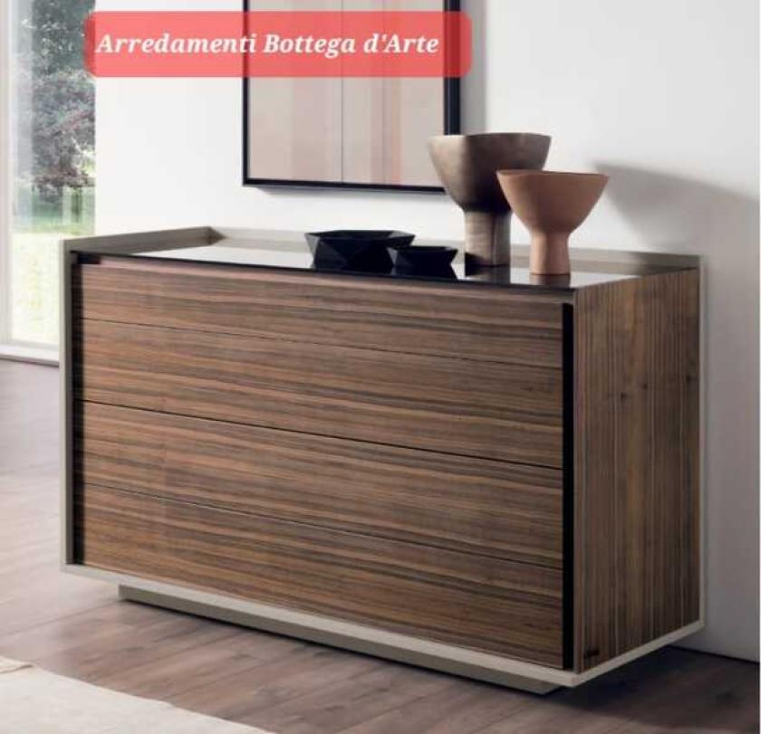 Le Fablier Collezione Zenit Comò Modello Flora un capolavoro di design che unisce eleganza e tecnologia innovativa. Realizzato in legno di noce canaletto e dettagli in MDF laccato, è dotato di 3 amp [...]